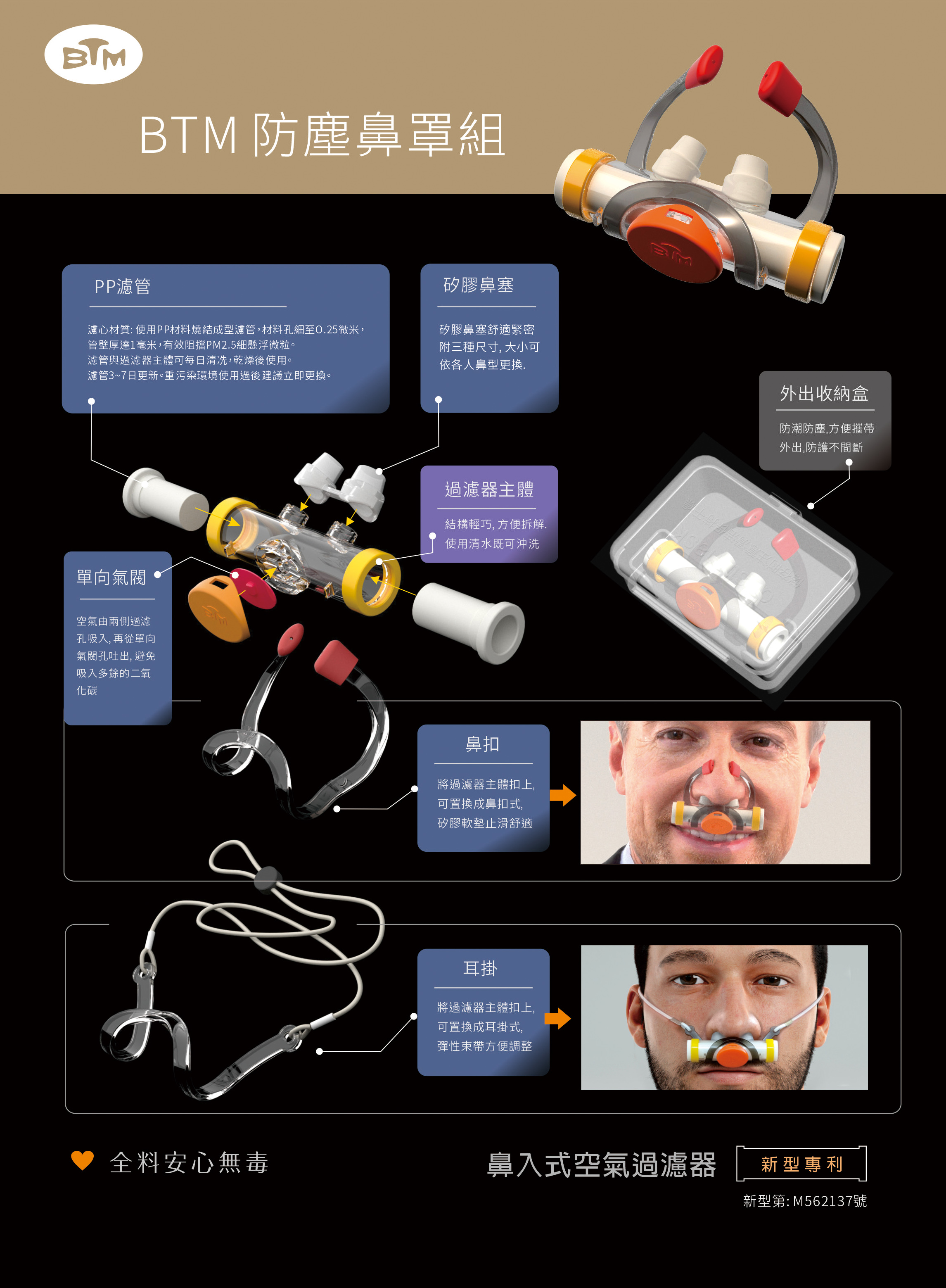 BTM鼻罩將解決這些日常困擾 讓您呼吸到乾淨空氣的同時 擁有更舒適、更便利的使用經驗!