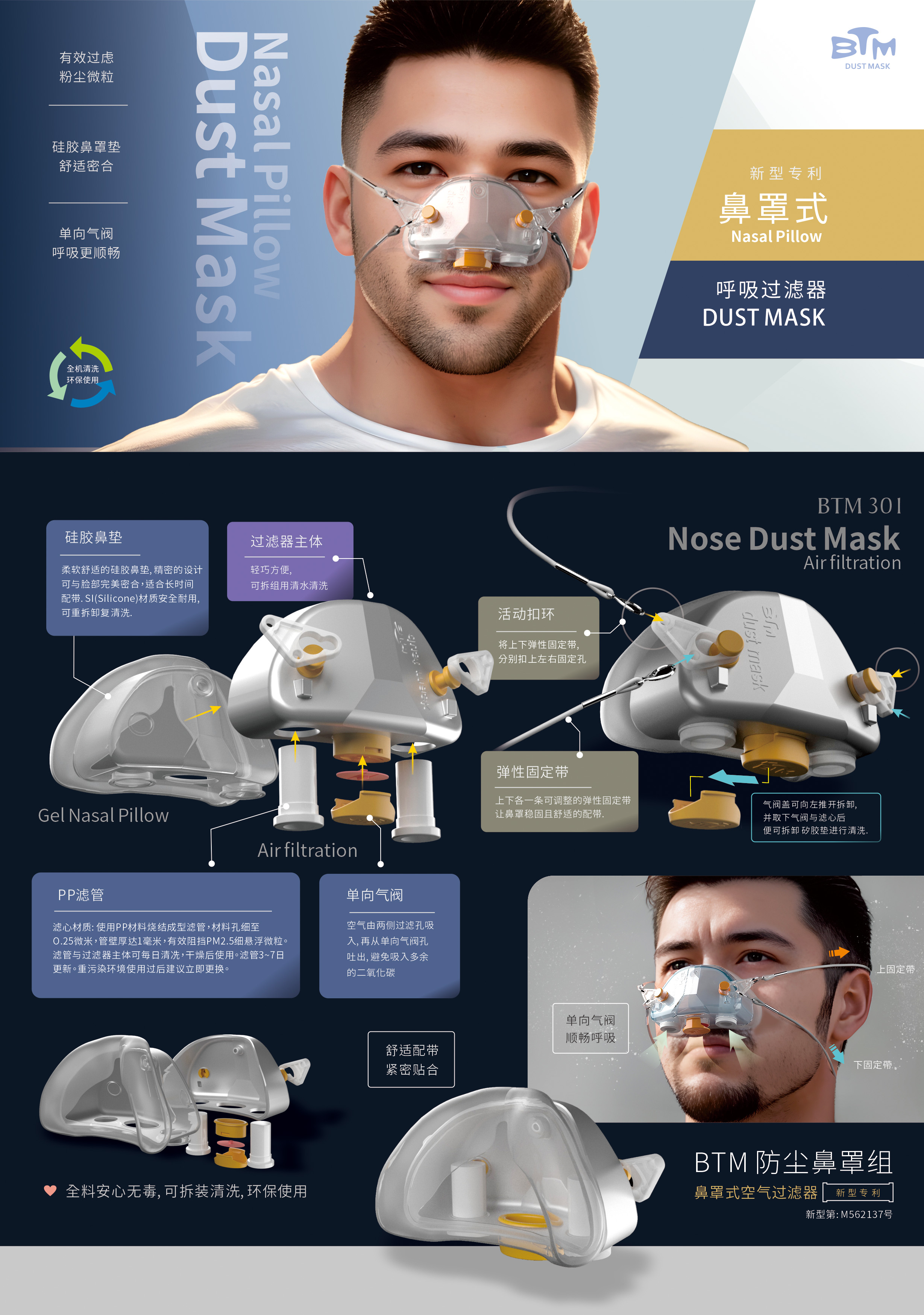 BTM鼻罩将解决这些日常困扰 让您呼吸到干净空气的同时 拥有更舒适、更便利的使用经验!
